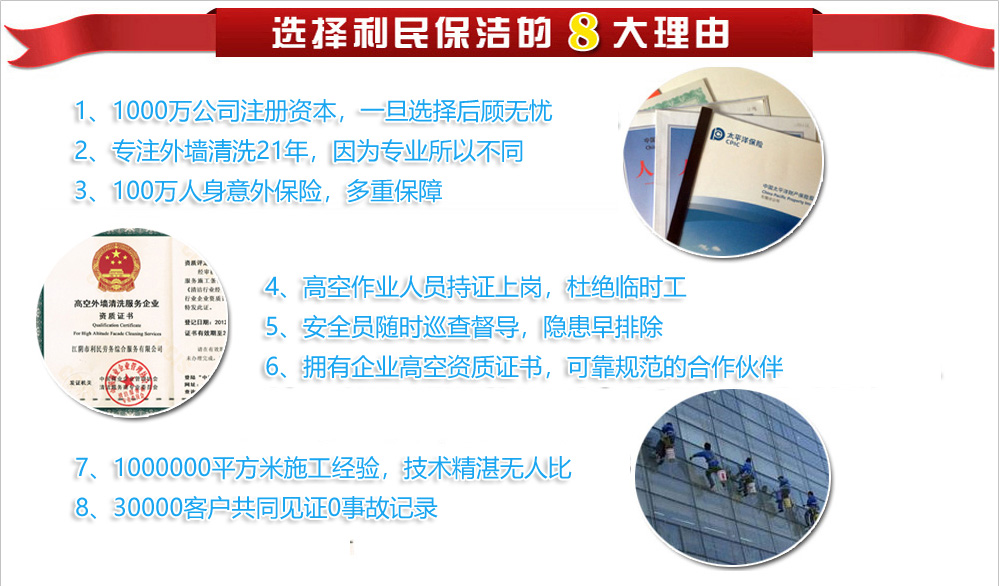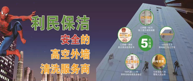 ![]() 利民,高空清潔行業的卓越領跑者。我們的外墻清洗業務包括:外墻清潔、外墻防水補漏、外墻涂料粉刷、LED樓體亮化工程高空安裝、外墻防水工程高空施工等系列高空作業項目,是物業公司、景觀工程公司、廣告公司、建筑、安裝公司、幕墻公司、各企事業單位等最佳高空作業服務專業供應商.專業安全高效,承包高空外墻清洗,.專業的施工團隊,所有人員均持證上崗,高空人員均購買100萬保險,21年1000000平方的外墻清洗經驗,優(yōu)質的服務..[詳細] 經典案例更多 >